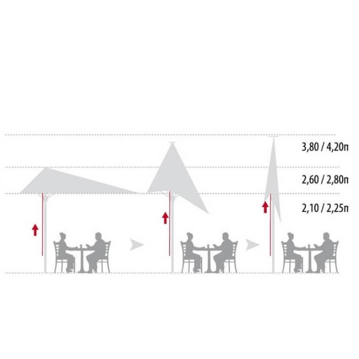 Serie TOP ELITE de parasoles telescópicos . La colección más completa para equipar la terraza de bares y retaurantes de una forma elegante, robusta y adaptada a la medida de su terraza. La colección se compone de parasoles en diferentes medidas, colores y telas (tejidos resinados y tejidos impermeables en distintos colores, y accesorios como canal verteaguas, cerramientos laterales, etc